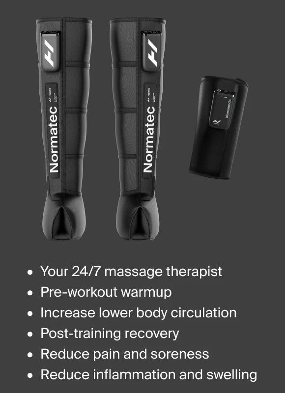 La thérapie par compression Normatec augmente la circulation et vous aide à conserver toute votre amplitude de mouvement, vous permettant ainsi de récupérer plus rapidement.